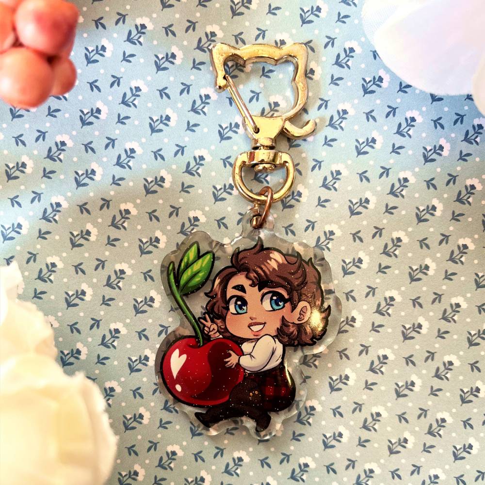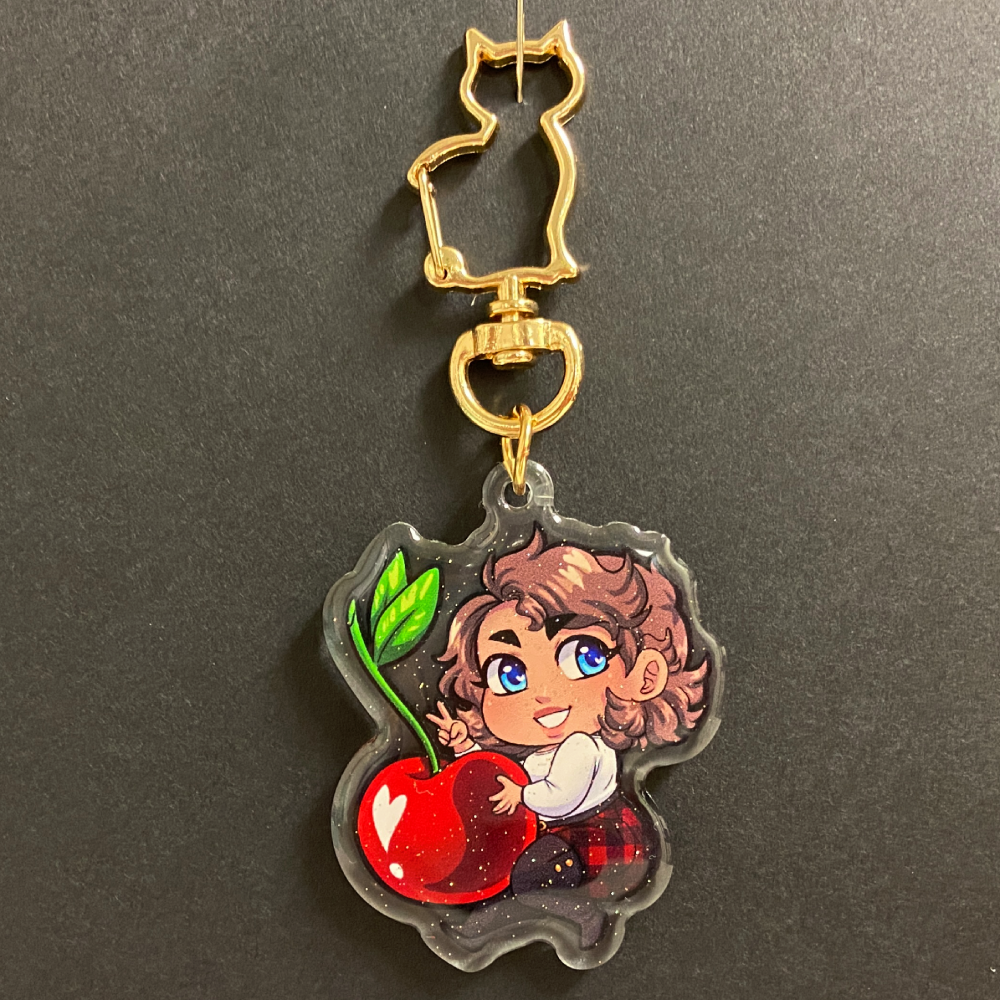 Two-sided acrylic charm Glitter on one side Approx 1.5" x 1.5" Cat-shaped clasp