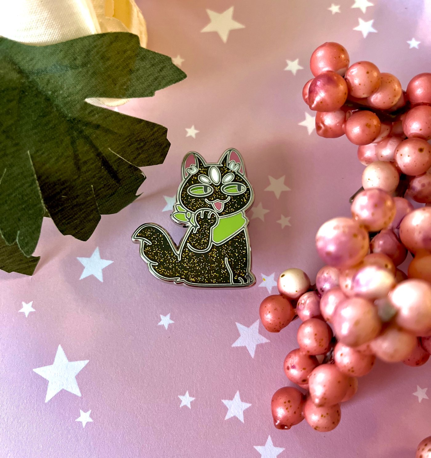 Hard enamel pin Approx 1" tall Faulty in this case means that the glitter is too dark which makes the design a little hard to see