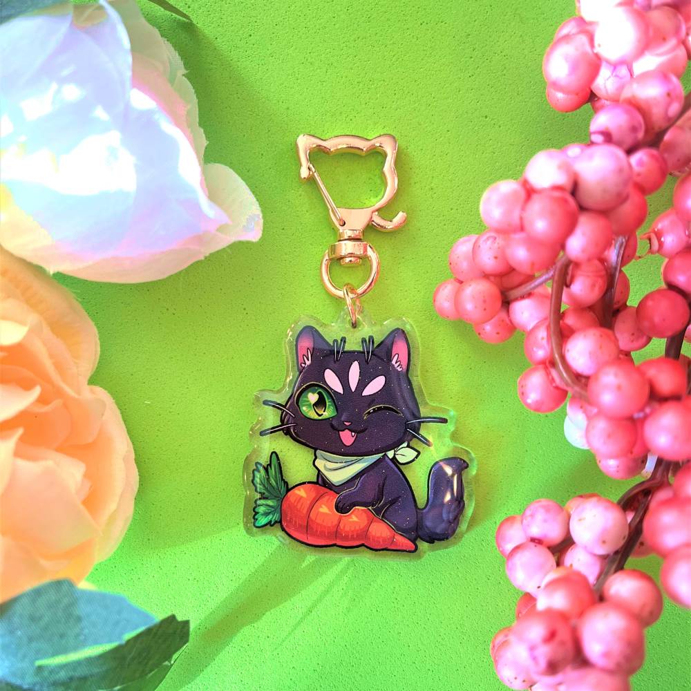 Two-sided acrylic charm Glitter on one side Approx 1.5" x 1.5" Cat-shaped clasp